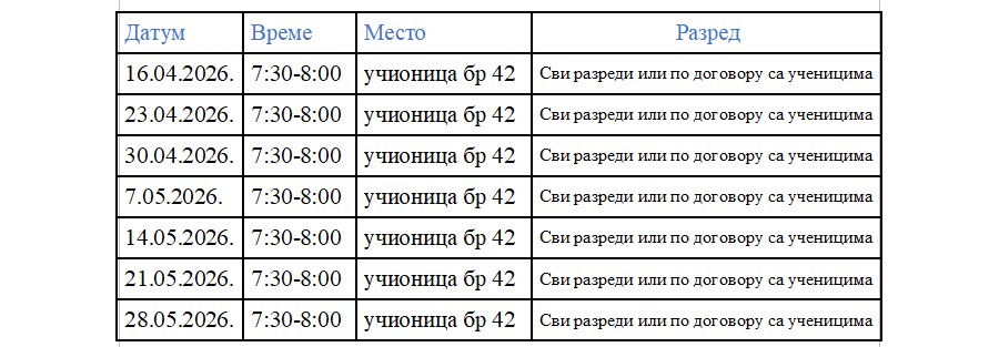 NAPOMENA: U dogovoru sa učenicima organizovaću dopunsku nastavu i u drugim danima. O tome će biti obavešten OS razreda!